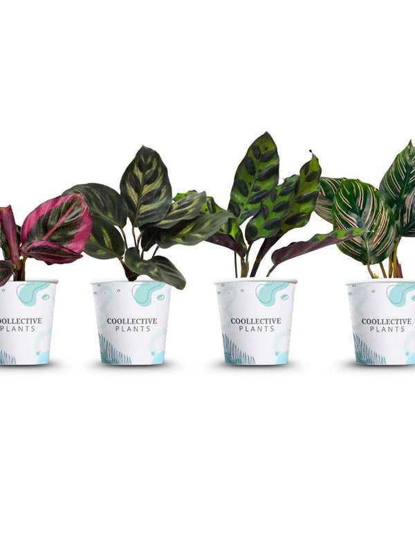 Calathea Collection (4PK) Essential Houseplant Live Plants Indoor Plants Live in 2 inch Pots, Easy House Plants Indoors Live, Fusion White, Calathea Ornata, Makayona, Rosy by Coollective Plants