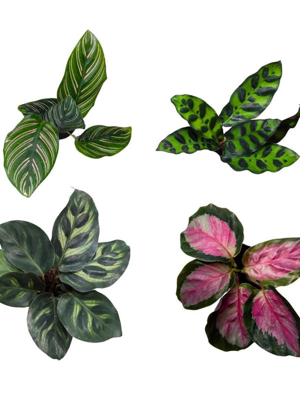 Calathea Collection (4PK) Essential Houseplant Live Plant Live in 2 inch Pots, Lancifolia, Calathea Ornata, Makayona, Rosy
