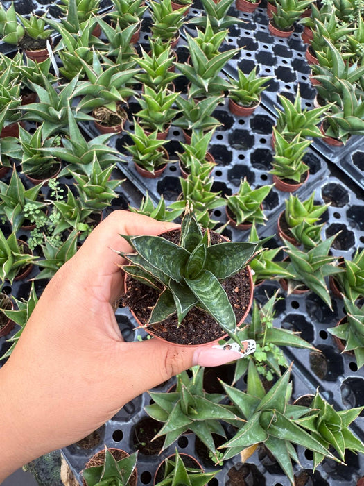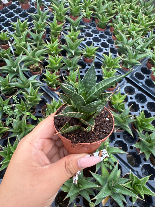 Sansevieria ‘Table Mountain’ is a stunning succulent known for its tall, upright, and broad leaves that feature striking horizontal banding in shades of green and gray. This easy-to-care-for plant adds a bold architectural element to any space and is perfect for both beginners and experienced plant lovers. It thrives in low to bright indirect light and requires minimal watering, making it an excellent choice for busy households or offices. Plus, it’s known for its air-purifying qualities, helping to improve indoor air quality naturally.